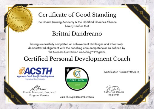 Certified Professional Life & Business Coach from The Coach Training Academy